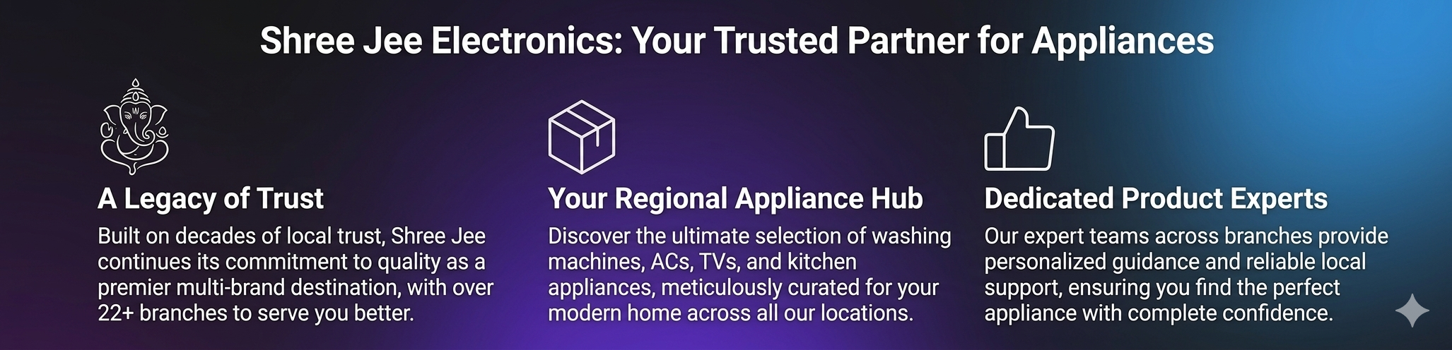 Welcome to Shreejee Electronics, a name synonymous with trust and excellence in consumer electronics and home appliances for over 45 years. As a family-run enterprise, we’ve built lasting relationships with our customers by consistently delivering quality products, fair deals, and unmatched service.