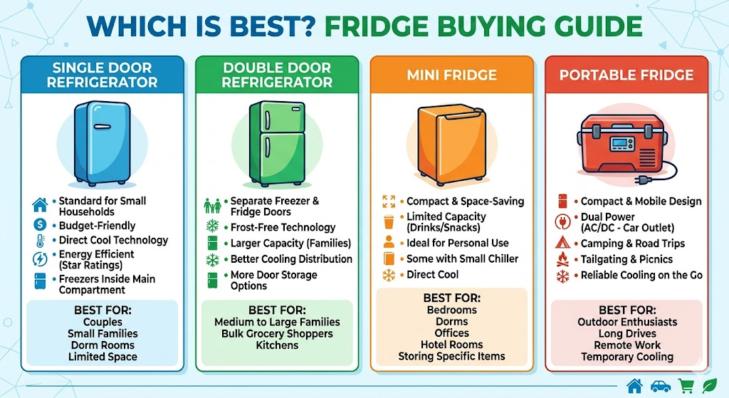 Single Door, Double Door, Mini Fridge & Portable Fridge Guide