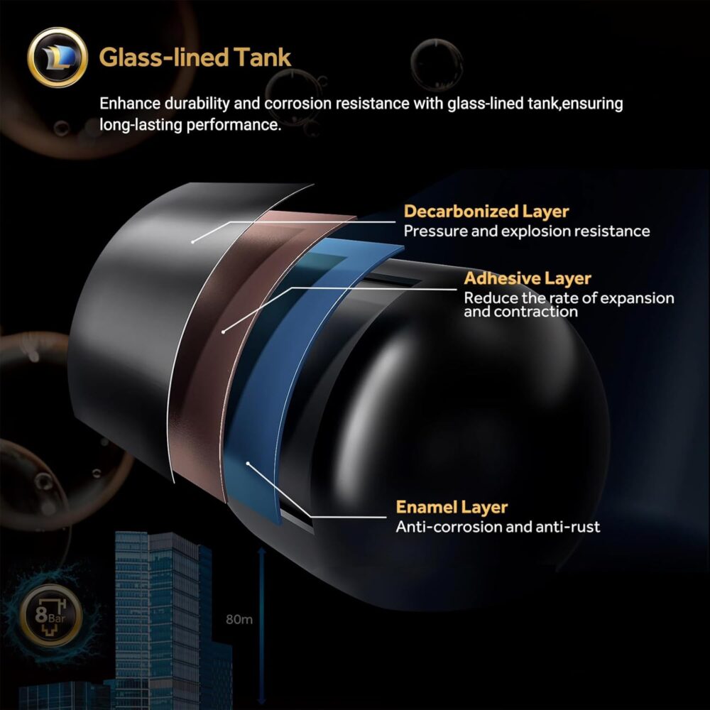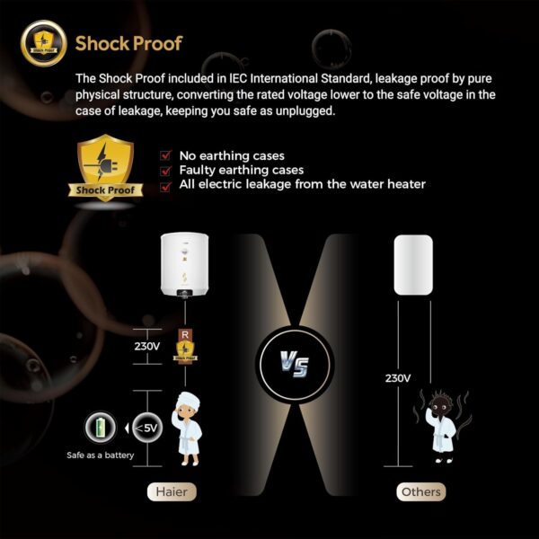 | Key Safety & Technology Features | Shock-proof, BPS, RSC Technology, 8 Bar Pressure, TTS Technology, PUF/EPS Insulation, 2200W Heating Element, MUV Valve, Superior Water Resistance(IPX4) |