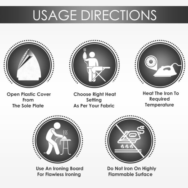 | Specifications | Light Weight, 360° Swivel Cord, Thermal Fuse |